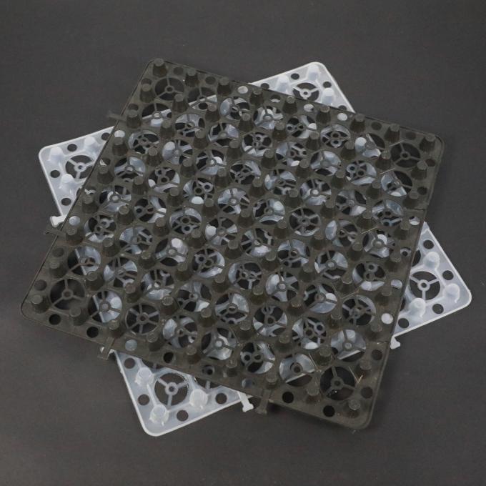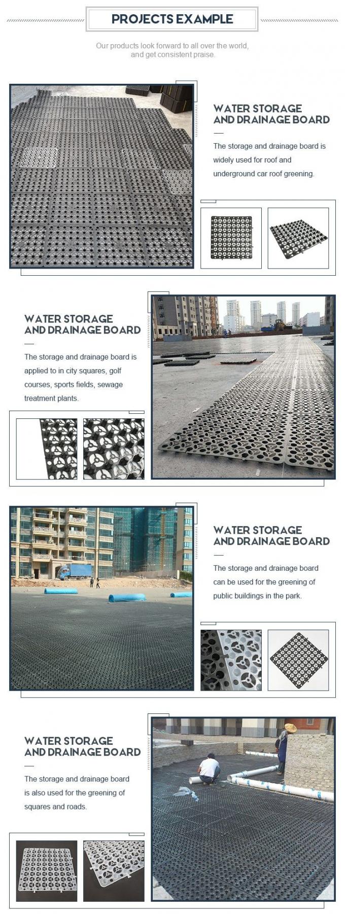 صُنعت ألواح التخزين والصرف البلاستيكية من البولي إيثيلين عالي الكثافة (HDPE) ، باستخدام ضغط عالٍ لحقن البلاستيك لتشكيل غلاف على شكل ثقب ، مع مساحة ستيريو ومستوى دعم ؛في الجزء العلوي من الغلاف ، مغطاة بقطعة قماش غير منسوجة كمستوى ترشيح لترشيح المياه وتخزين المياه وتصريف المياه.