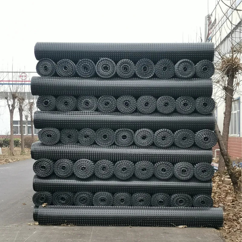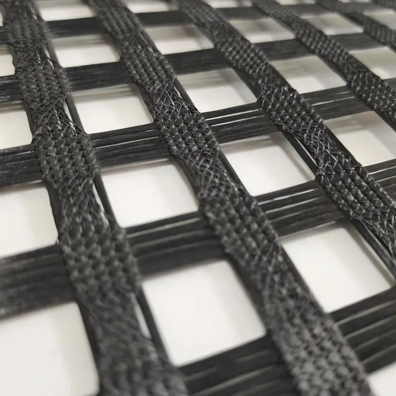 100-100KN بوليستر جيوجريد PET ذو محورين جيوجريد لحماية المنحدر لبناء طرق السكك الحديدية