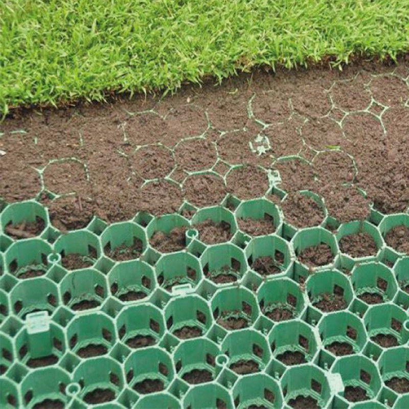 الشبكات المصفوفة بالعشب من HDPE الشبكات الحصرية مصنوعة من HDPE (البولي إيثيلين عالي الجزيئية) مع الألياف ومقاومة الشيخوخة ،باستخدام ضغط عالي لإدخال البلاستيك لتشكيل قشرة تشبه عش النحل، مع مساحة ستيريو ومستوى الدعم.